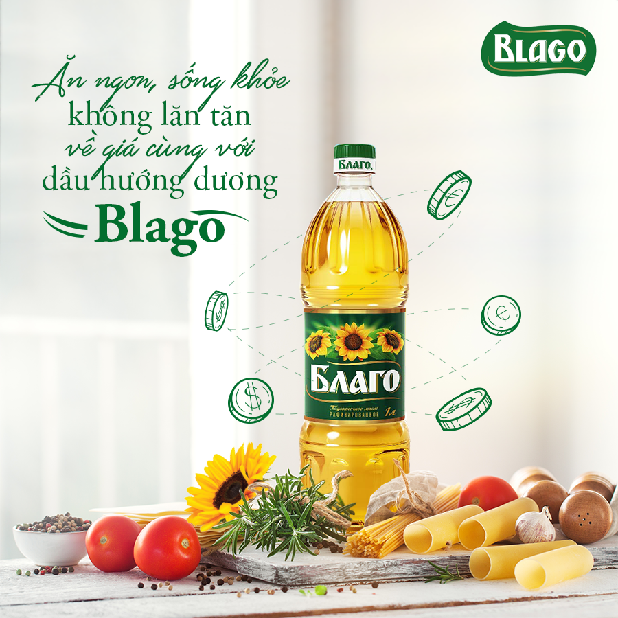 Dầu hướng dương Blago là sản phẩm dầu ăn được sản xuất tại Liên bang Nga và được nhập khẩu, phân phối độc quyền tại thị trường Việt Nam bởi Công ty Cổ phần Suntria. Chắc hẳn sẽ có rất nhiều khách hàng khi nghe đến sản phẩm nhập khẩu, xách tay hoặc có yếu tố nước ngoài thì sẽ dễ lăn tăn về vấn đề giá cả: "Liệu sản phẩm có đắt không?"; "Có phù hợp với túi tiền và mức sống trung bình của người tiêu dùng Việt Nam không?".
